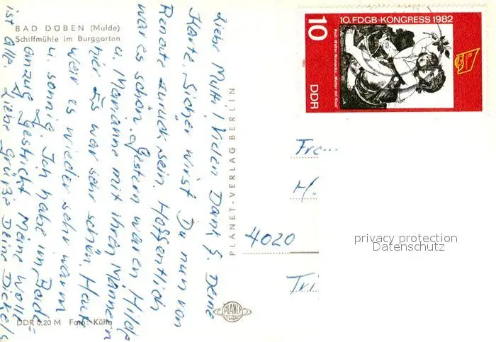 Bad_Dueben Schiffmuehle Burggarten Bad_Dueben postalisch gelaufen 1921-1965 Erhaltung siehe scans [PaolaD17] PaolPID1