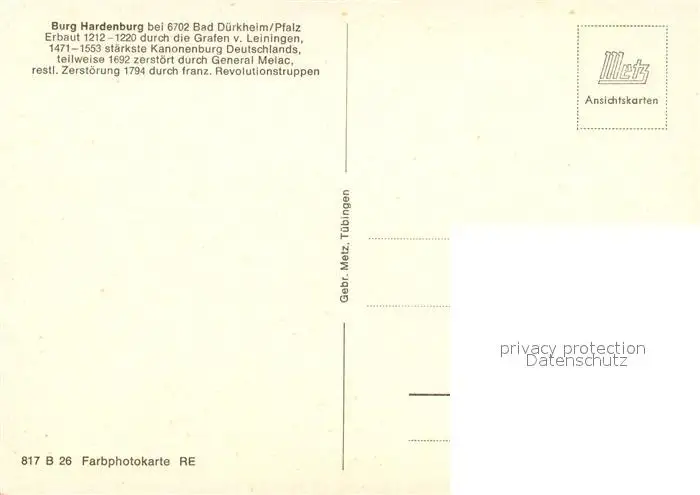 Bad_Duerkheim Burg Hardenburg 13. Jhdt. Bad_Duerkheim postalisch nicht gelaufen nach 1965 Erhaltung siehe scans [FriedD77] Frierer