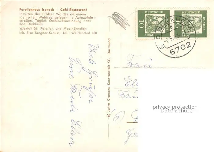 Bad_Duerkheim Forellenhaus Isenach Café Restaurant Waldsee Pfaelzer Wald Bad_Duerkheim postalisch gelaufen 1963 Erhaltung siehe scans [FriedD77] Frierer