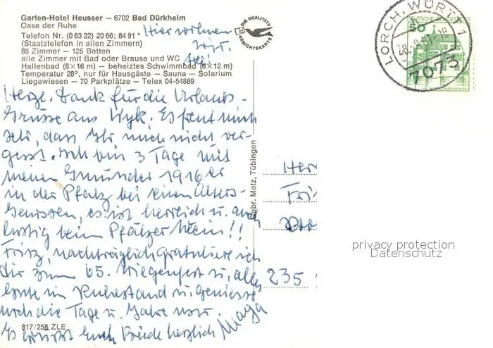 Bad_Duerkheim Garten-Hotel Heusser Swimming Pool Bad_Duerkheim postalisch gelaufen 1981 Erhaltung siehe scans [FriedD77] Frierer