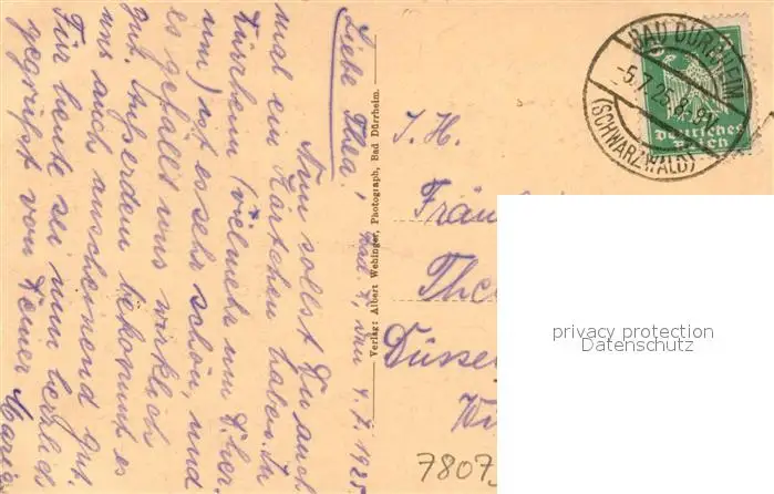 Bad_Duerrheim Hoechstgelegenes Solbad Europas Kurort im Schwarzwald Bad_Duerrheim postalisch gelaufen 1925 Erhaltung siehe scans [FriedD77] Frierer