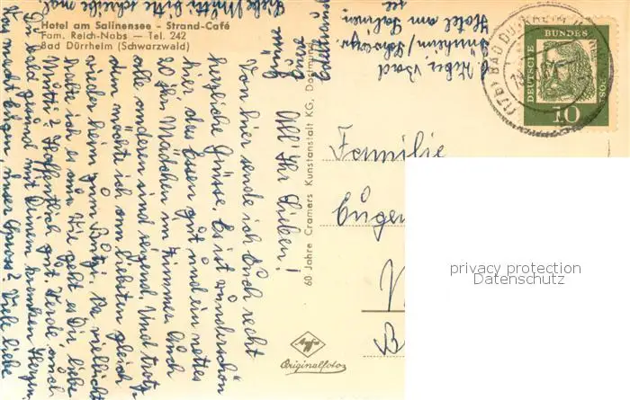 Bad_Duerrheim Hotel am Salinensee Strandcafe Bad_Duerrheim postalisch gelaufen 1962 Erhaltung siehe scans [WerneD78] WernPID7