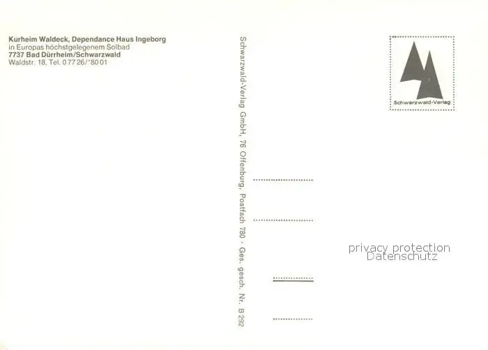 Bad_Duerrheim Kurheim Waldeck Haus Ingeborg Bad_Duerrheim postalisch nicht gelaufen nach 1965 Erhaltung siehe scans [LiesaD40] LiesID40