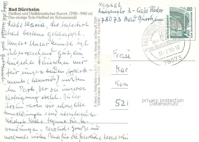 Bad_Duerrheim Kurort Sole-Heilbad im Schwarzwald Bad_Duerrheim postalisch gelaufen 1994 Fliegeraufnahme Erhaltung siehe scans [FriedD77] Fliegeraufnahme Frierer