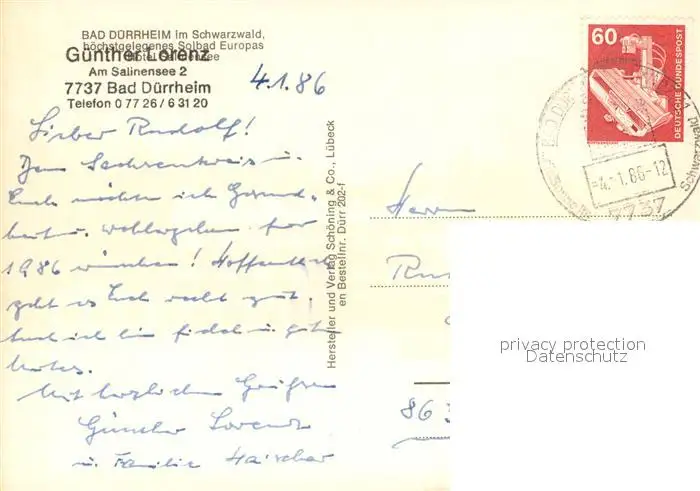 Bad_Duerrheim Solbad Bad_Duerrheim postalisch gelaufen 1986 Erhaltung siehe scans [WerneD78] WernPID7