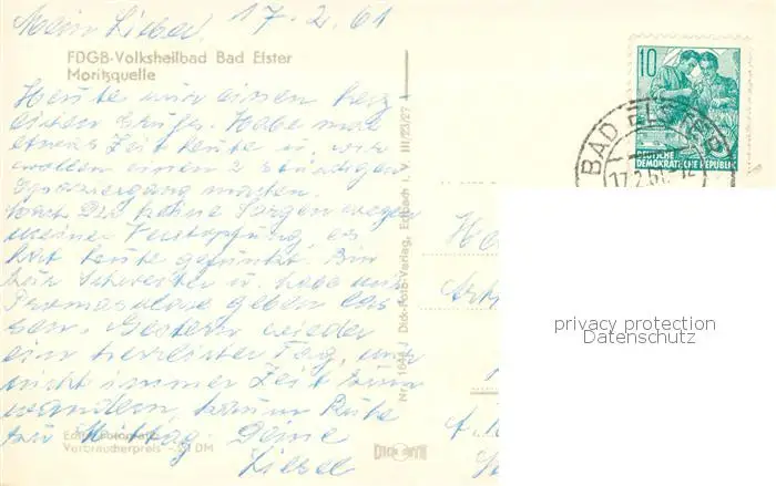 Bad_Elster FDGB Volksheilbad Moritzquelle im Winter Bad_Elster postalisch gelaufen 1961 Erhaltung siehe scans [FriedD77] Frierer