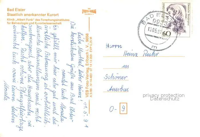 Bad_Elster Klinik Albert Funk Bad_Elster postalisch gelaufen 1991 Erhaltung siehe scans [WerneD78] WernPID7
