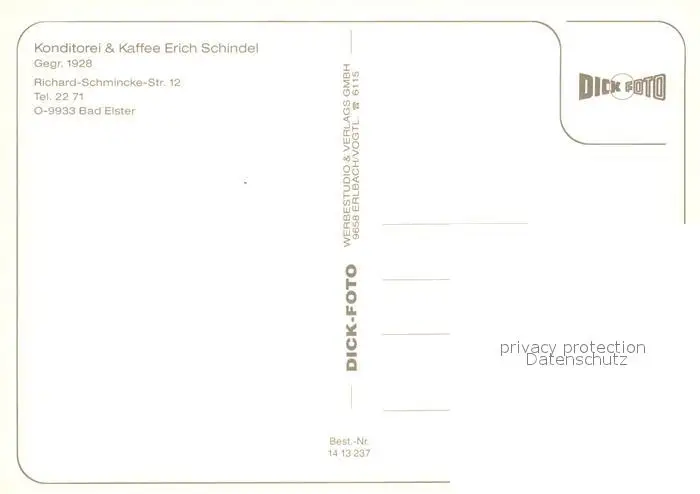 Bad_Elster Konditorei Kaffee Erich Schindel Bad_Elster postalisch nicht gelaufen nach 1965 Erhaltung siehe scans [WerneD78] WernPID7