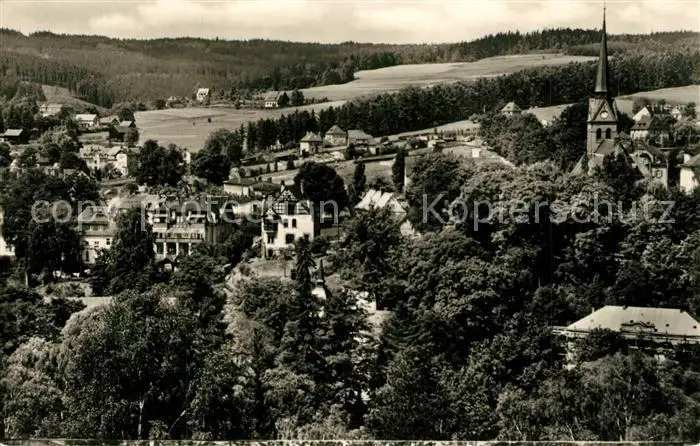 Bad_Elster Kategorie Alte Ansichtskarten Postkarten bx52305 Bad_Elster Ortsansicht mit Kirche Bad_Elster postalisch nicht gelaufen 1957 Erhaltung siehe scans [FriedD77]