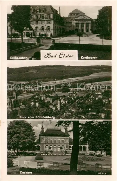 AK / Ansichtskarte Bad_Elster Sachsenhof Kurtheater Blick vom Brunnenberg Kurhaus Bad_Elster