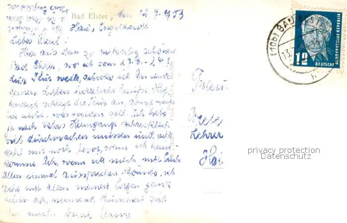 Bad_Elster Sachsenhof Kurtheater Blick vom Brunnenberg Kurhaus Bad_Elster postalisch gelaufen 1953 Erhaltung siehe scans [FriedD77] Frierer