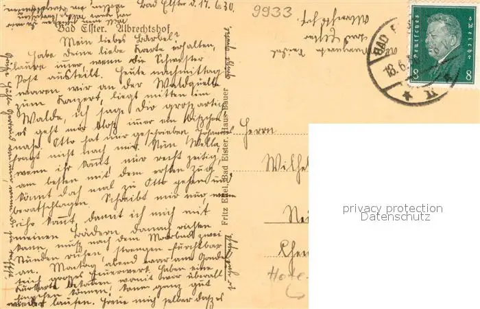 Bad_Elster Ubrechtshof Aussenansicht Bad_Elster postalisch gelaufen 1930 Erhaltung siehe scans [LiesaD40] LiesID40