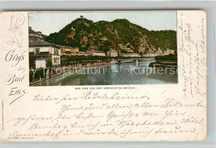 Bad Ems Blick von der Verdeckten Bruecke Bad Ems postalisch gelaufen 1900 Erhaltung siehe scans [WerneD78] WernPID7