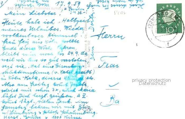 Bad_Ems Hotel Staatliches Kurhaus Bad_Ems postalisch gelaufen 1959 Erhaltung siehe scans [WerneD78] WernPID7