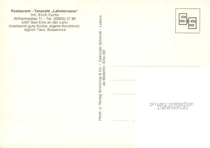 Bad_Ems Restaurant Tanzcafe Lahnterrasse Bad_Ems postalisch nicht gelaufen nach 1965 Erhaltung siehe scans [FriedD77] Frierer