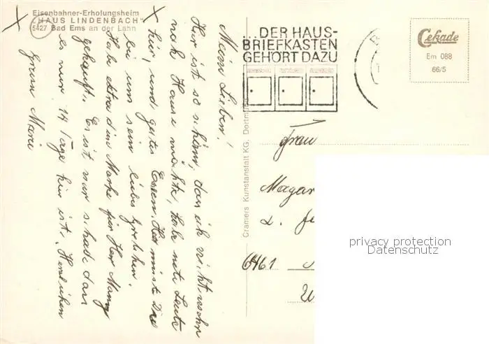 Bad_Ems_Lahn Haus Lindenbach Eisenbahner Erholungsheim Bad_Ems_Lahn postalisch gelaufen nach 1965 Erhaltung siehe scans [FriedD77] Frierer