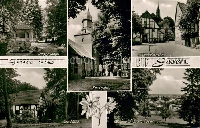 AK / Ansichtskarte Bad_Essen Bahnhofstrasse Trinkbrunnen Alte Muehle Fachwerkhaeuser Bad_Essen