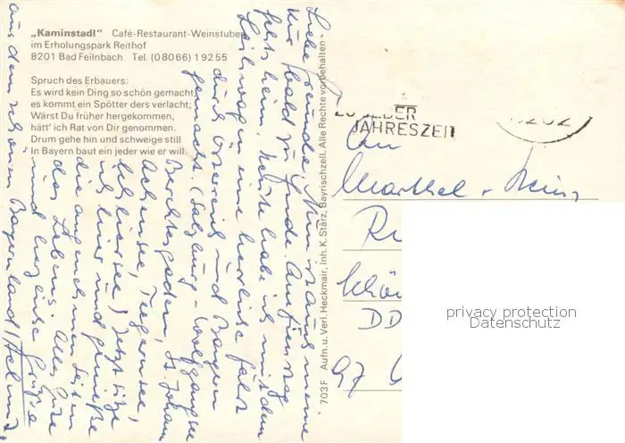 Bad_Feilnbach Kaminstadl Cafe Restaurant Gastraeume Kuchentheke Bad_Feilnbach postalisch gelaufen nach 1965 Erhaltung siehe scans [WerneD78] WernPID7