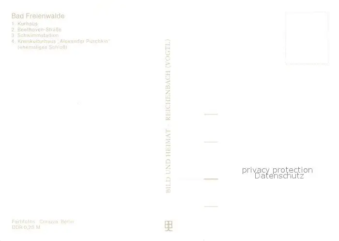 Bad_Freienwalde Kurhaus Beethoven Strasse Schwimmstadion Kreiskulturhaus Alexander Puschkin ehemaliges Schloss Bad_Freienwalde postalisch nicht gelaufen 1982 Erhaltung siehe scans [FriedD77] Frierer