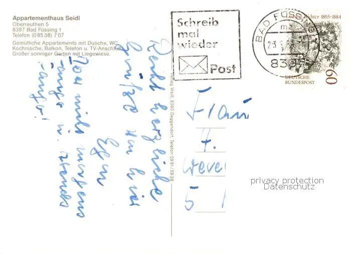 Bad_Fuessing Appartementhaus Seidl Details Bad_Fuessing postalisch gelaufen 1984 Erhaltung siehe scans [WerneD78] WernPID7