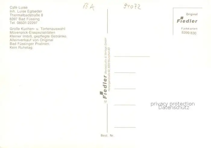 Bad_Fuessing Café Luise Gastraum Verkaufstheke Bad_Fuessing postalisch nicht gelaufen nach 1965 Erhaltung siehe scans [FriedD77] Frierer