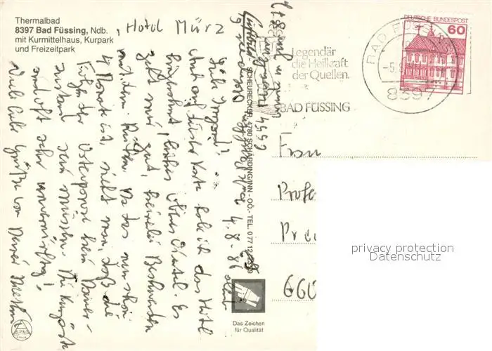 Bad_Fuessing Fliegeraufnahme Thermalbad Kurmittelhaus Kurpark Freizeitpark Bad_Fuessing postalisch gelaufen 1986 Erhaltung siehe scans [LiesaD40] LiesID40