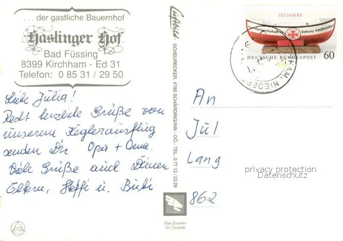 Bad_Fuessing Haslinger Hof Teich Gaststube Zimmer Bad_Fuessing postalisch gelaufen nach 1965 Erhaltung siehe scans [WerneD78] WernPID7