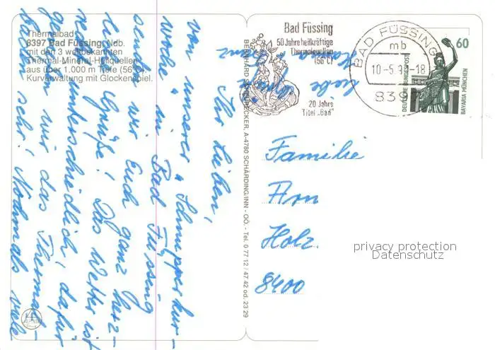 Bad_Fuessing Thermalbad Bad_Fuessing postalisch gelaufen 1991 Erhaltung siehe scans [FriedD77] Frierer