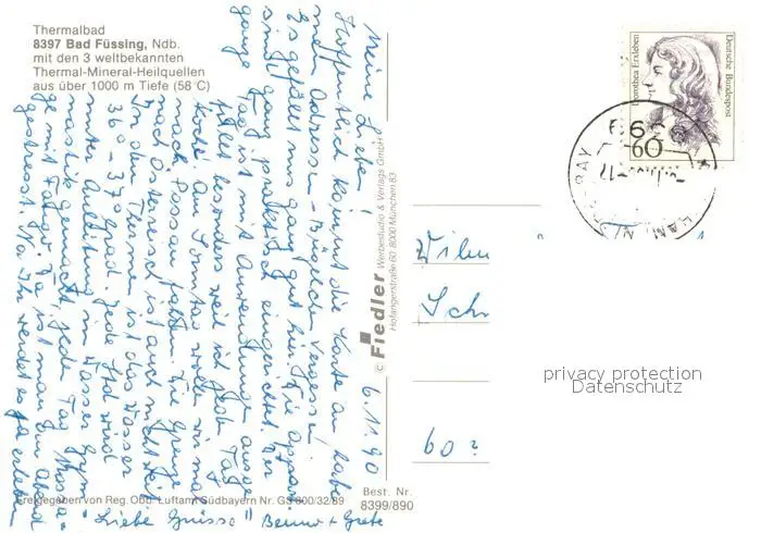 Bad_Fuessing Thermalbad Mineral Heilquellen Fliegeraufnahme Bad_Fuessing postalisch gelaufen 1990 Erhaltung siehe scans [WerneD78] WernPID7