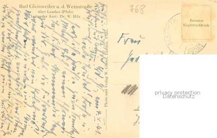 Bad_Gleisweiler Sanatorium Kupfertiefdruck Bad_Gleisweiler postalisch gelaufen 1941 Erhaltung siehe scans [FriedD77] Frierer