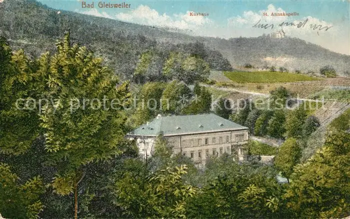 Bad_Gleisweiler mit Kurhaus und St Annakapelle Bad_Gleisweiler postalisch gelaufen 1920 Erhaltung siehe scans [WerneD78] WernPID7