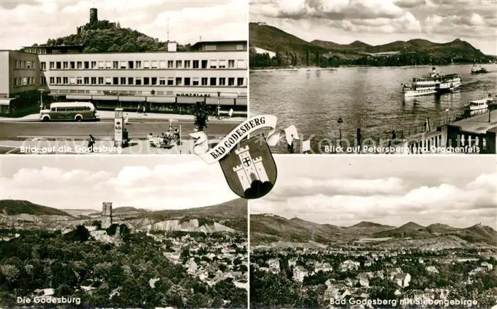 AK / Ansichtskarte Bad_Godesberg Blick zur Godesburg Petersberg und Drachenfels Panorama mit Siebengebirge Bad_Godesberg