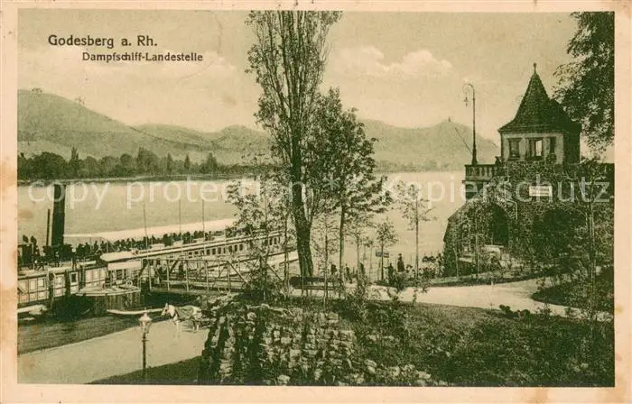 AK / Ansichtskarte Bad_Godesberg Dampfschiff Landestelle Rheinfaehre Bad_Godesberg