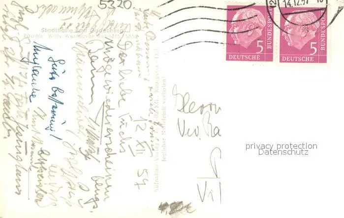 Bad_Godesberg Stadthalle Restaurant Terrasse Wasserspiele Park Bad_Godesberg postalisch gelaufen 1957 Erhaltung siehe scans [FriedD77] Frierer