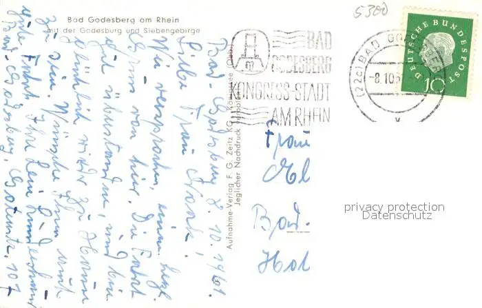 Bad_Godesberg Stadtpanorama mit Godesburg Bad_Godesberg postalisch gelaufen 1961 Erhaltung siehe scans [FriedD77] Frierer