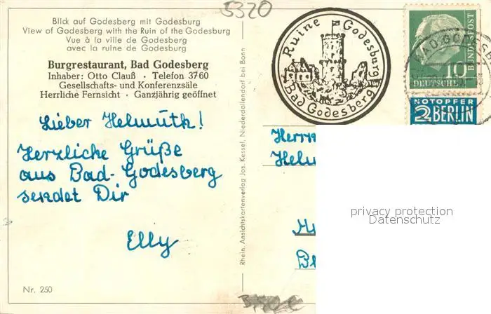 Bad_Godesberg Stadtpanorama mit Godesburg Bad_Godesberg postalisch gelaufen 1921-1965 Erhaltung siehe scans [FriedD77] Frierer