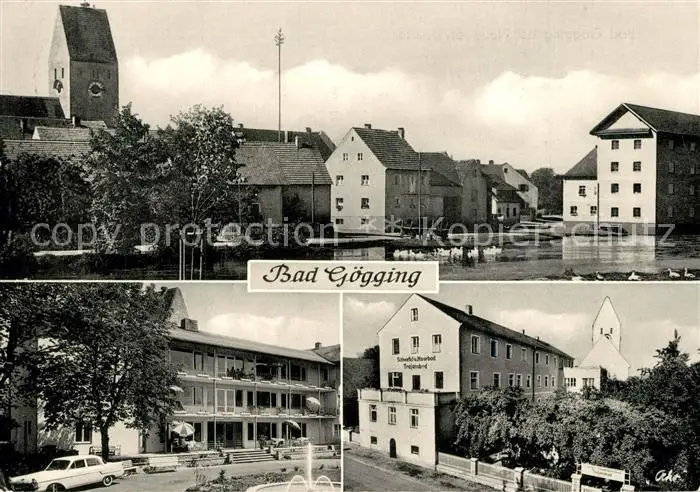 AK / Ansichtskarte Bad_Goegging Schwefel und Moorbad Trajansbad Ortsmotiv mit Kirche Bad_Goegging