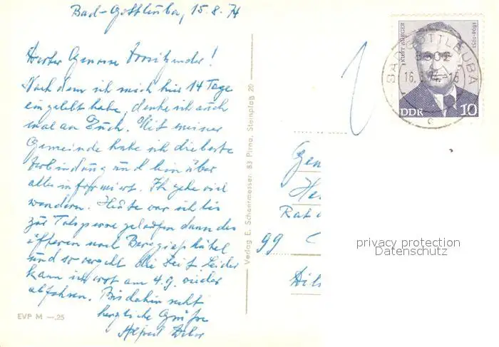 Bad_Gottleuba-Berggiesshuebel Postmeilensaeule Bad postalisch gelaufen 1974 Erhaltung siehe scans [FriedD77] Frierer