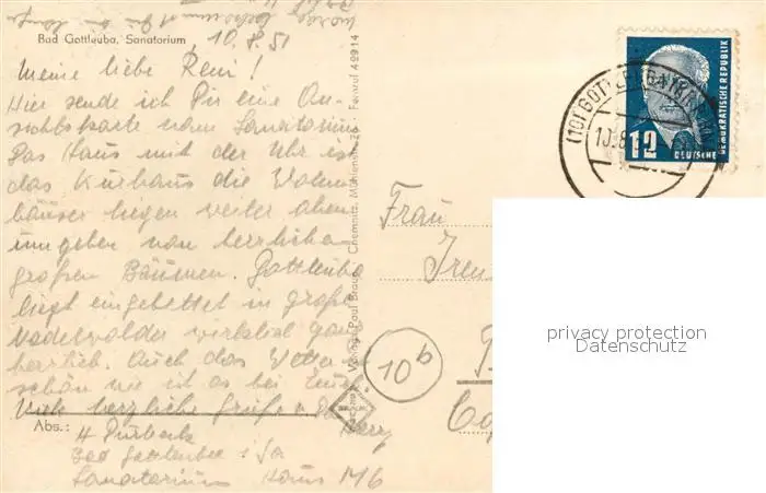 Bad_Gottleuba-Berggiesshuebel Sanatorium Bad postalisch gelaufen 1951 Erhaltung siehe scans [FriedD77] Frierer