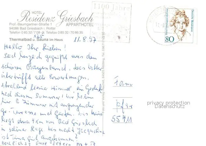 Bad_Griesbach_Rottal Hotel Residenz Griesbach Hallenbad Gastraeume Bad_Griesbach_Rottal postalisch gelaufen 1997 Erhaltung siehe scans [WerneD78] WernPID7