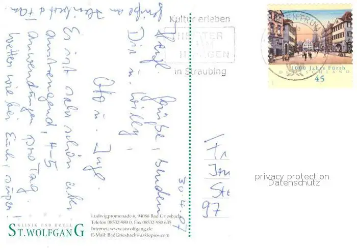 Bad_Griesbach_Rottal Klinik und Hotel St Wolfgang Bad_Griesbach_Rottal postalisch gelaufen 2007 Erhaltung siehe scans [FriedD77] Frierer