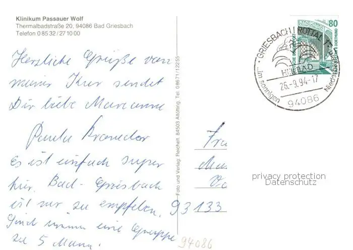 Bad_Griesbach_Rottal 0 Bad_Griesbach_Rottal postalisch gelaufen 1994 Erhaltung siehe scans [FriedD77] Frierer