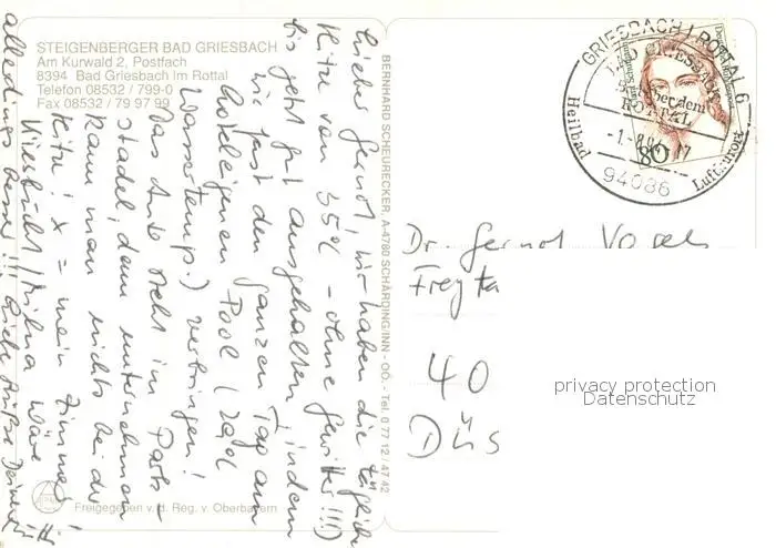 Bad_Griesbach_Rottal Steigenberger Hotel Fliegeraufnahme Gastraum Hallenbad Bad_Griesbach_Rottal postalisch gelaufen 1994 Erhaltung siehe scans [WerneD78] WernPID7