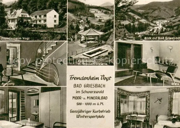 Bad_Griesbach_Schwarzwald Fremdenheim Vogt Moor- und Mineralbad Kurpavillon Wassertreten Bad_Griesbach postalisch gelaufen 1958 Erhaltung siehe scans [FriedD77] Frierer