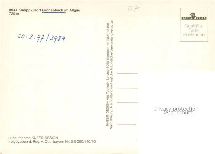Bad_Groenenbach Kneippkurort Fliegeraufnahme Bad_Groenenbach postalisch nicht gelaufen 1997 Erhaltung siehe scans [FriedD77] Frierer
