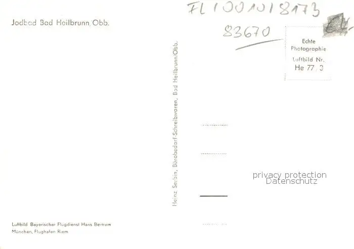 Bad_Heilbrunn Kategorie Alte Ansichtskarten Postkarten bx56953 Bad_Heilbrunn Fliegeraufnahme Bad_Heilbrunn postalisch nicht gelaufen nach 1965 Erhaltung siehe scans [WerneD78]