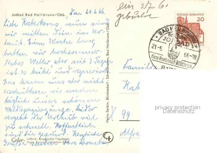 Bad_Heilbrunn Fliegeraufnahme Bad_Heilbrunn postalisch gelaufen 1966 Erhaltung siehe scans [WerneD78] WernPID7