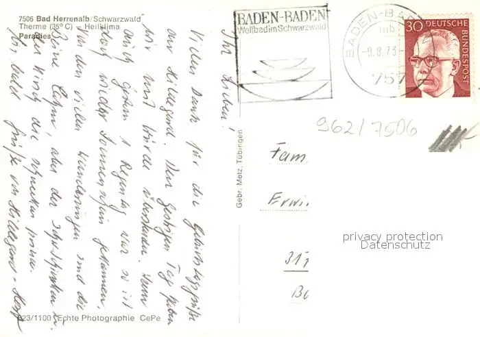 Bad_Herrenalb Bad_Herrenalb postalisch gelaufen 1973 Erhaltung siehe scans [NatalD47] NataID47