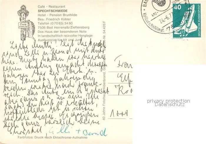 Bad_Herrenalb Café Restaurant Spechtschmiede Bad_Herrenalb postalisch gelaufen 1977 Erhaltung siehe scans [FriedD77] Frierer
