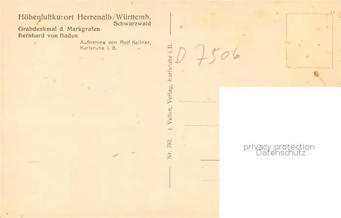 Bad_Herrenalb Grabdenkmal Markgraf Bernhard von Baden Bad_Herrenalb postalisch nicht gelaufen 1921-1965 Erhaltung siehe scans [FriedD77] Frierer
